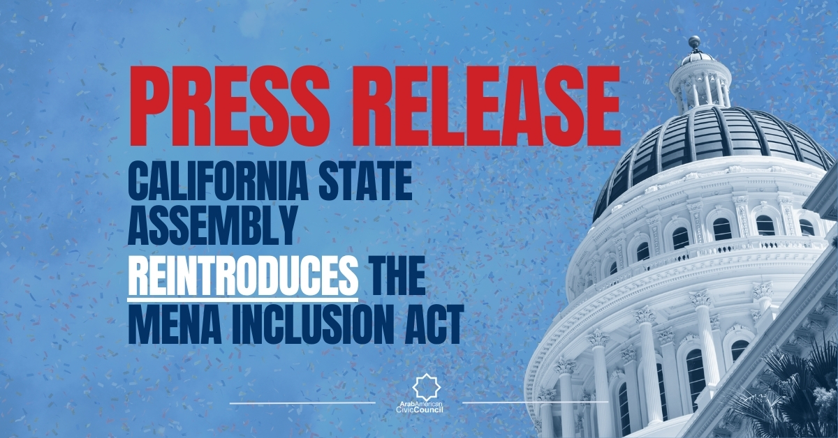 The Arab American Civic Council welcomed the California State Assembly’s adoption of House Resolution 30 (HR30) relative[…]